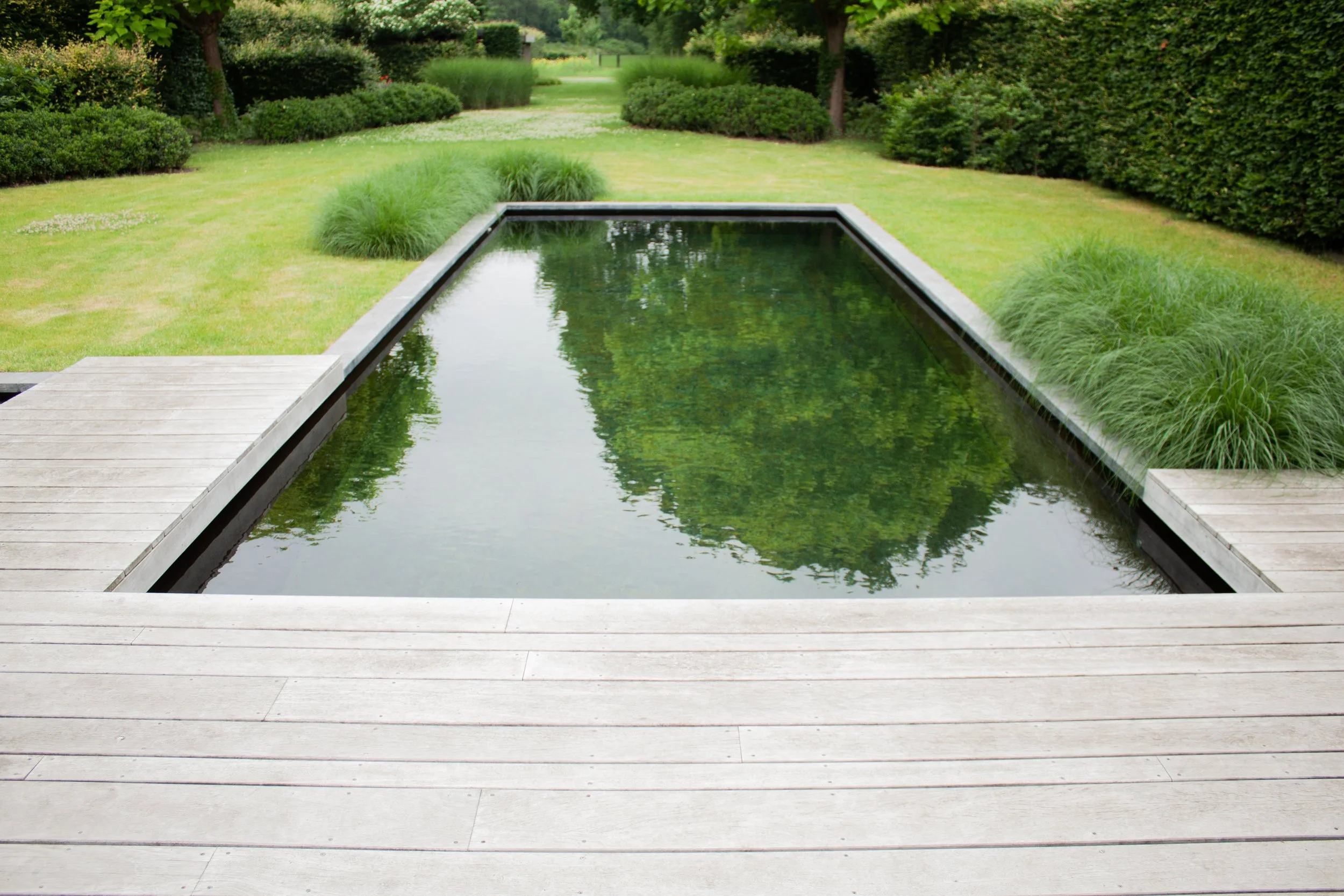 Het filtergedeelte wordt visueel gescheiden van het zwemgedeelte door middel van een loopbrug.